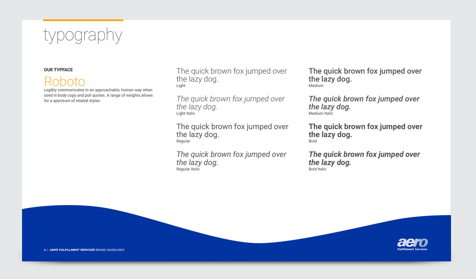 I collaborated with AERO Fulfillment to create a set of branding guidelines that established consistency across their communications. The guidelines defined logo usage, color palette, typography, and design applications, providing their team with a clear framework to maintain a cohesive and professional brand presence across print and digital platforms.